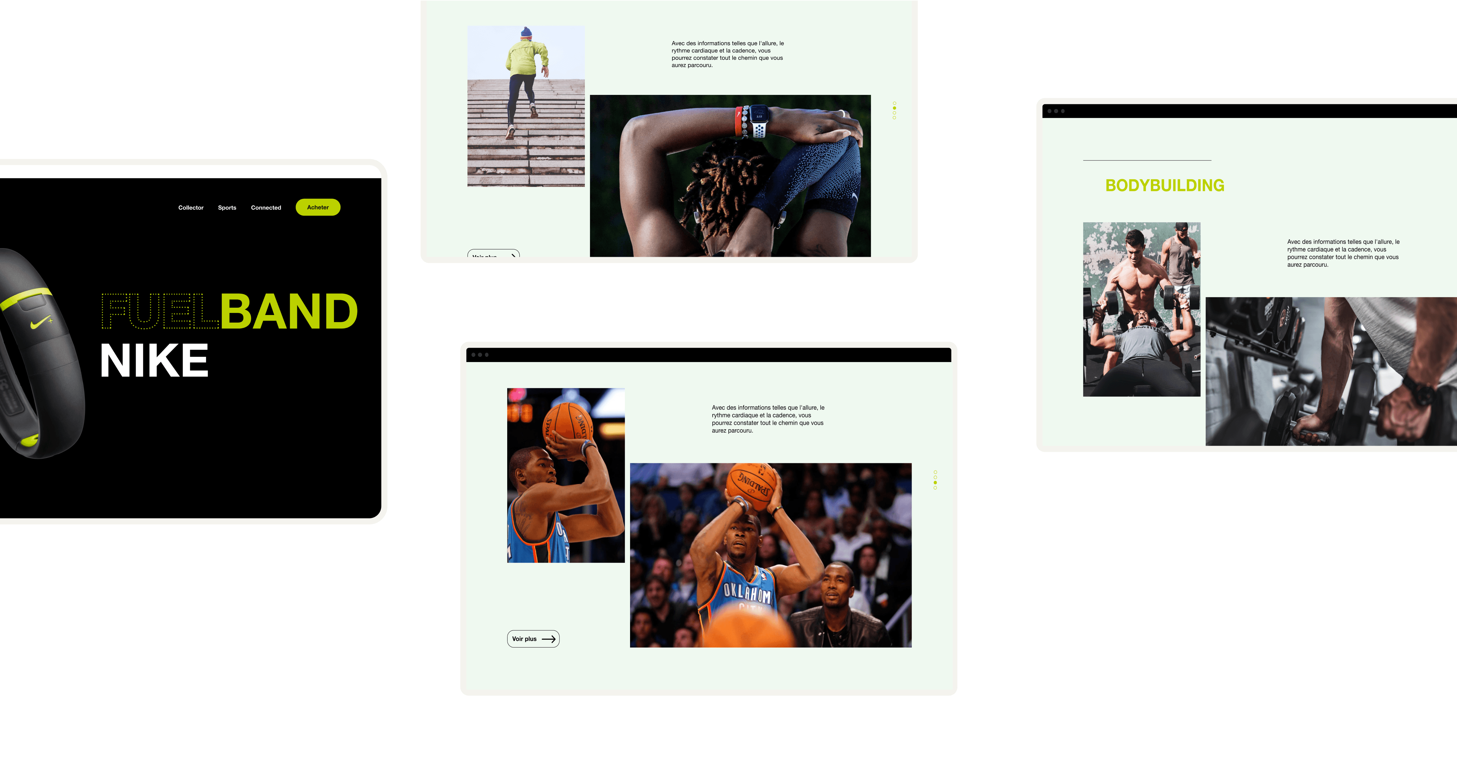 Nous sommes une grande marque sportive qui souhaite un onepage dédié à la mise en valeur d'un nouveau modèle/collection de bracelets connectée de notre marque. Nous aimerions un site onepage qui met en avant les valeurs de notre collection, avec des mises en situation du bracelet (ce n'est pas grave si les bracelets que portent les personnes dans les visuels ne correspondent pas aux chaussures mises en valeur, faites au mieux avec les banques d'images/images disponibles.)